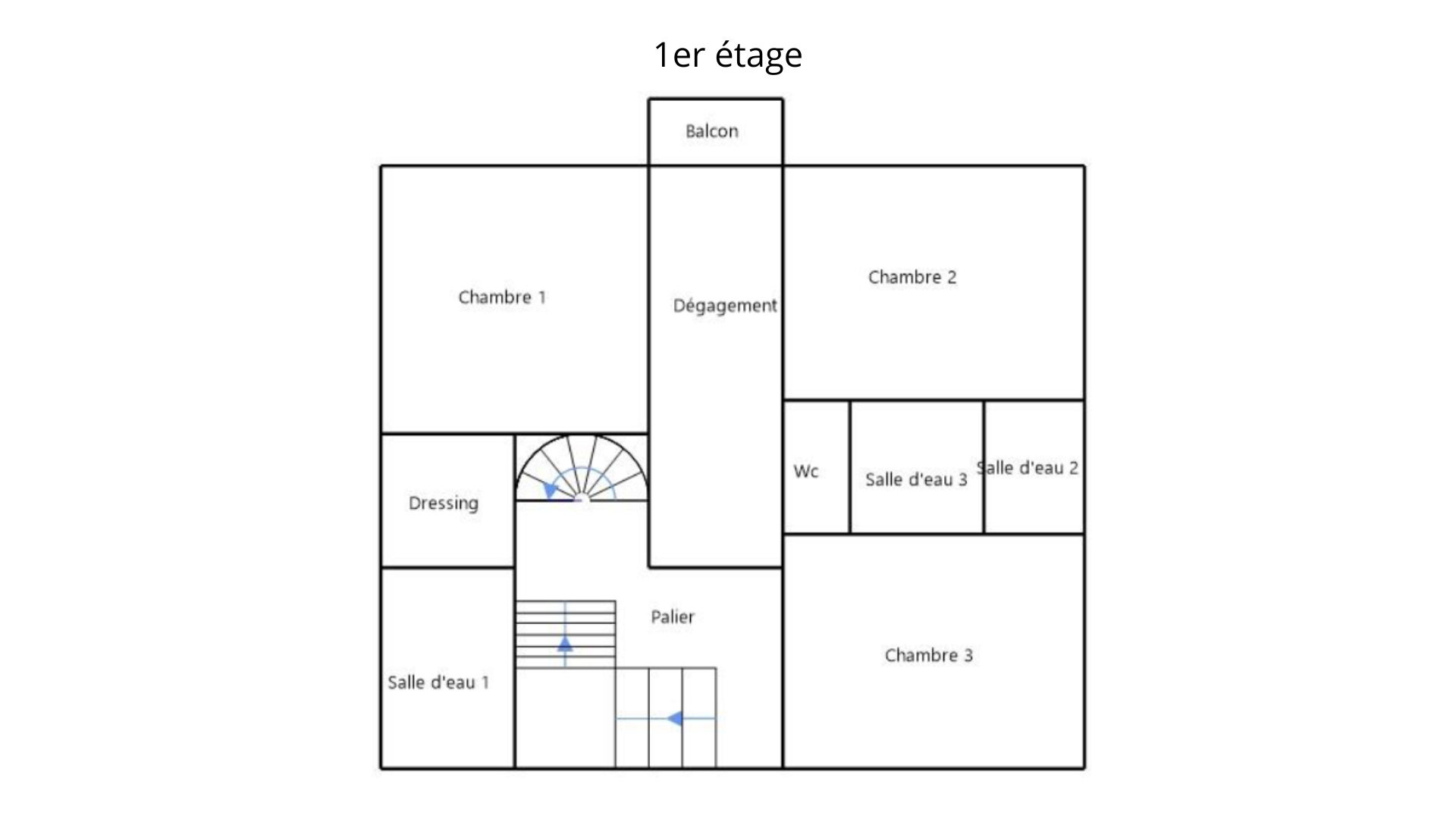 Un élégant escalier en pierre mène au premier étage. Le palier dessert un grand couloir donnant accès à un balcon situé en bout de couloir, une superbe suite parentale avec dressing et salle d’eau, ainsi que deux grandes chambres lumineuses, chacune disposant de sa propre salle d’eau. Un WC indépendant complète cet étage.